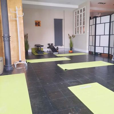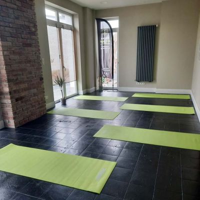 Dort finden unsere Yoga-Kurse statt. Gleichzeitig werden alle Indoor-Kurse live übertragen, sodass ihr auch von zu Hause aus problemlos mitmachen könnt. Bei schlechtem Wetter bietet der Raum auch für die Outdoor-Kurse den Teilnehmern ein Dach über dem Kopf.